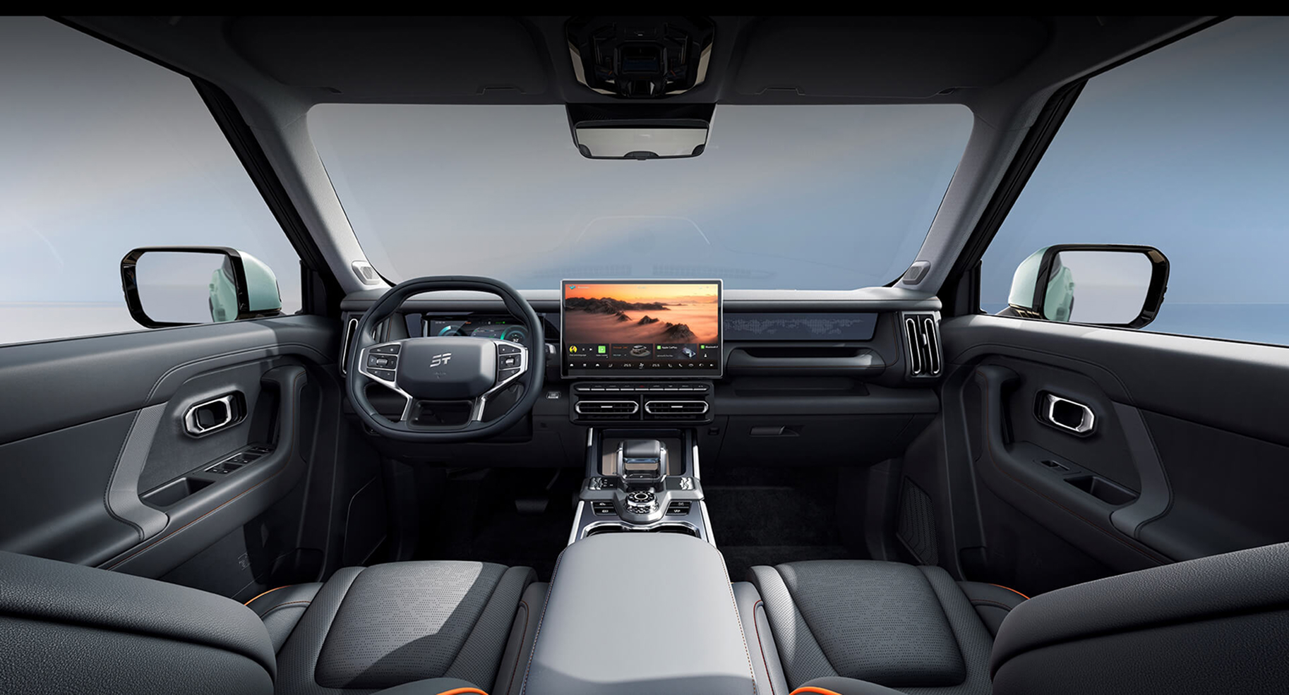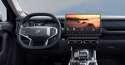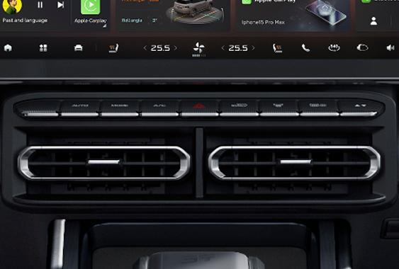 El Jetour T1 integra equipamiento avanzado: pantalla HD touch de 15,6", Apple ClarPlay y Android Auto, climatizador bi-zona, cargador inalámbrico. Incorpora además múltiples 7 modos de conducción.