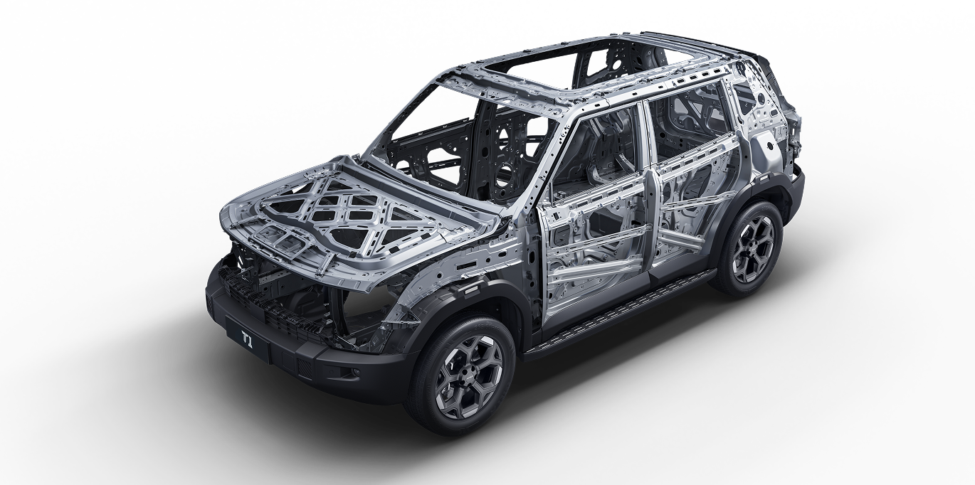 El Jetour T1 fue diseñado con una estructura de carrocería reforzada de seguridad que brinda protección ante impactos y también rigidez para las condiciones off-road más exigentes.
