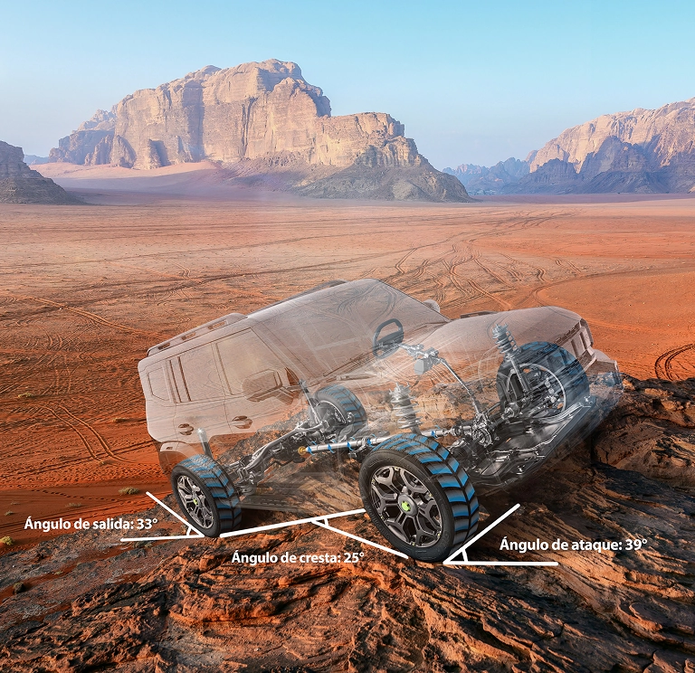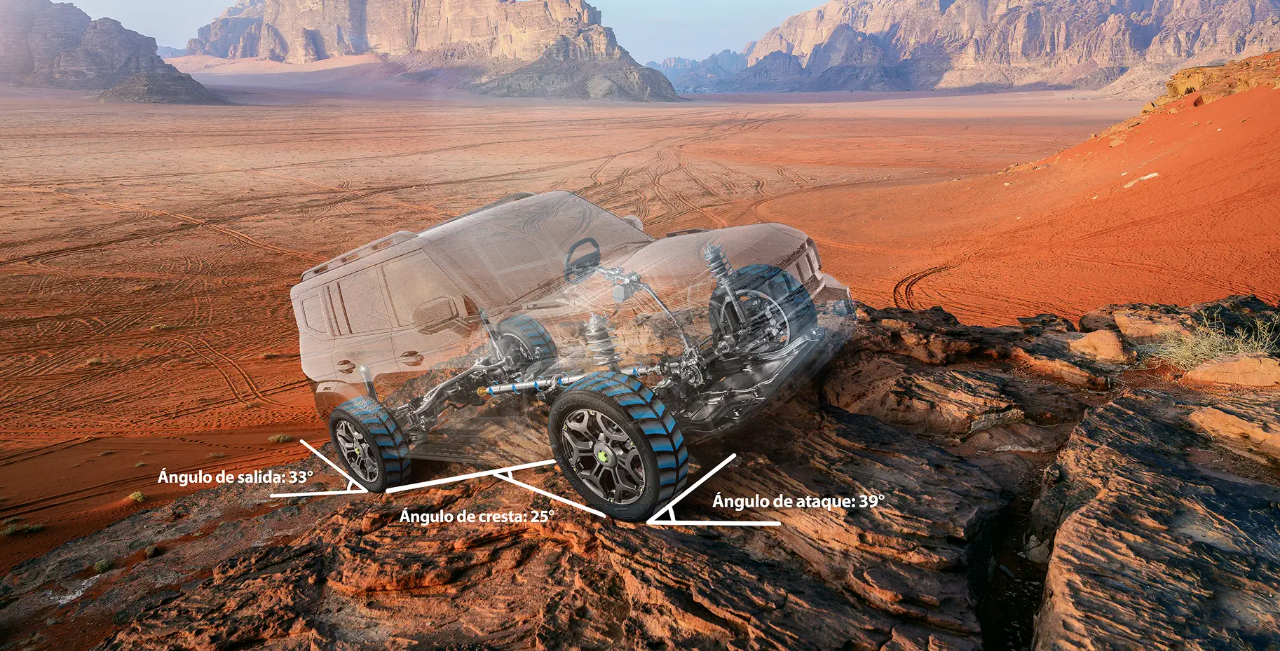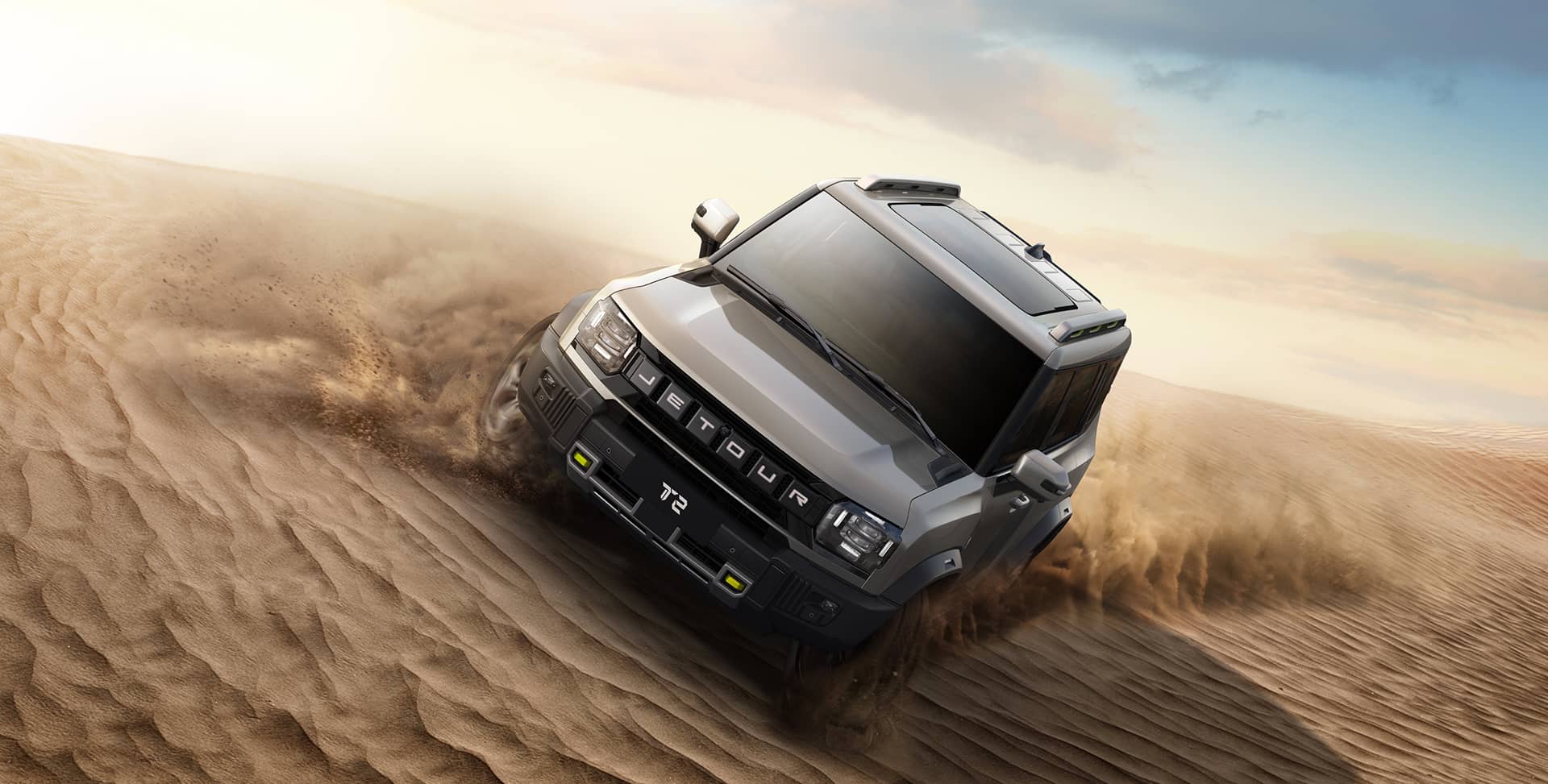 La suspensión independiente en las cuatro ruedas del Jetour T2 garantiza un manejo cómodo y seguro en cualquier camino.