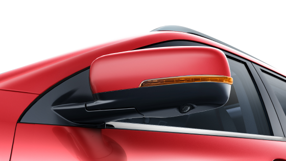 Espejos exteriores plegables eléctricamente con desempañador y luz de viraje.
