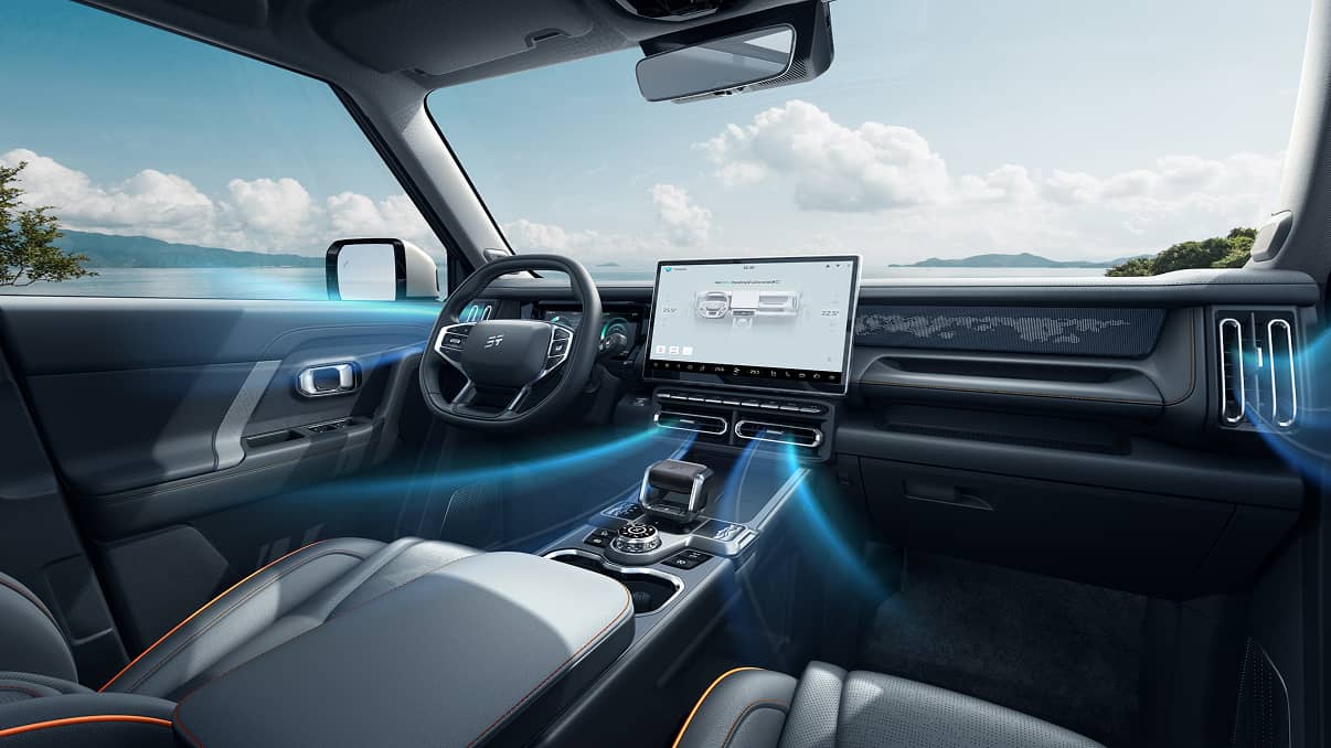 El interior del Jetour T1 combina comodidad y calidad. Está equipado con materiales soft